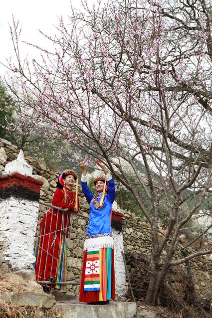 高大挺拔的梨樹如星星般散落在獨具特色的嘉絨藏族民居和古老碉樓附近。眼前看到的是雪白的梨花,身邊走過的是笑容比梨花還甜的藏族姑娘,交融成一道絕美的風(fēng)景線。