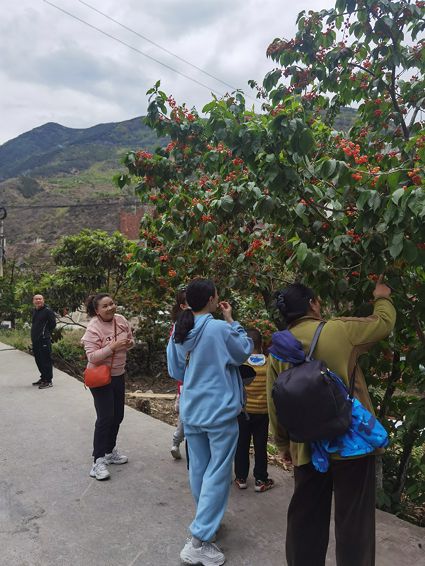 四月,櫻桃正紅,眼下有著春果第一之美譽的櫻桃已陸續(xù)成熟。走進瀘定的村村寨寨,道路邊、院墻里、田地里,晶瑩透亮的瑪瑙紅櫻桃再次掛滿枝頭,散發(fā)出誘人的甜香,吸引了不少游客前來采摘打卡。