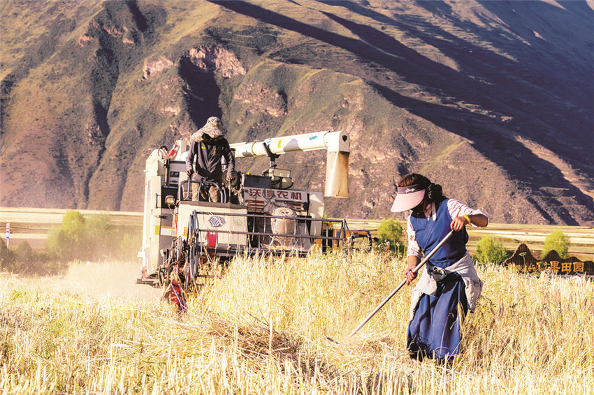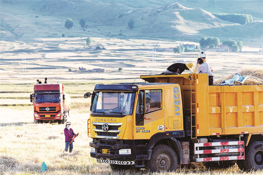 一望無邊的農(nóng)田里,谷粒飽滿,一陣風(fēng)吹來,金黃色的青稞隨風(fēng)起舞。收割機正來回穿梭,不一會兒就裝了滿滿一車……入秋后,甘孜縣迎來秋收時節(jié),到處呈現(xiàn)出一派豐收的景象。