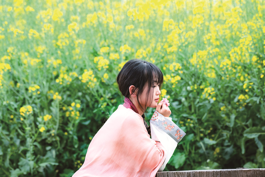 陽春三月,驅(qū)車百里,峰回路轉(zhuǎn),至一小鎮(zhèn),喚烏拉溪,為古驛站。背夫崖下,峻山環(huán)護(hù),小河繞村,屋舍散落,白墻灰瓦,綴以紅檐,桃花夭夭,棧道蜿蜒??图倚∨?,青衣嬌容,穿行花間,簪花比俏。昔日荒坡,綠樹成蔭,繁花之下,草莓豆莢,青果胡豆,蔓草芳苓。