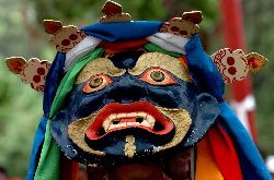 具有一千多年歷史的藏戲因所戴的面具不同分白面具和藍(lán)面具兩派,在《諾桑》、《卓娃桑姆》、《朗莎姑娘》等八大藏戲劇目中,因人物角色不同有30多種多姿多彩的面具。(圖片來(lái)源:友多圖庫(kù))