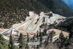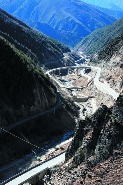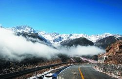 瀘定縣雅家埂,通往海螺溝景區(qū)的道路彎彎曲曲盤旋在山間。