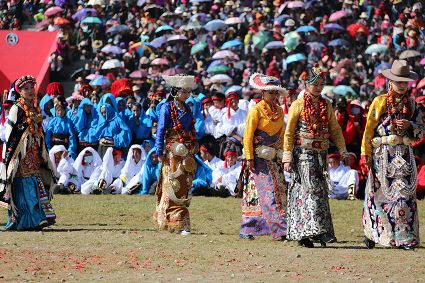 于是,年復一年,“漢子”與“花”兒們便挺拔、綻放在漢語表達的一個極點之上,被玄想,被渴望。對遠道而來的人們或是世代居于高原的子民而言,康巴漢子與康巴之花不僅僅是美的化身,通過康巴漢子與康巴之花的評比,人們在尋找一個早已失落卻又天然渾成的世界。