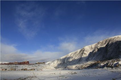 記得,離開甘孜縣城,前往滿金寺的那個早晨。同行的幾個人早早用過了早飯,趁著出發(fā)前僅有的一點(diǎn)時間,站在頂樓視野開闊的餐廳里,盼著太陽沖出來,直接把陽光大把大把地扔在大雪所覆蓋的一切事物上。天公作美,出發(fā)之前,太陽慷慨了一回。于是,一陣噼噼啪啪的快門聲響了起來,應(yīng)和著寥寥餐廳里的某種空白。