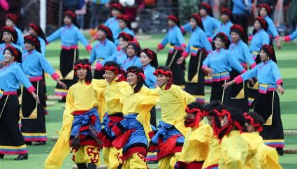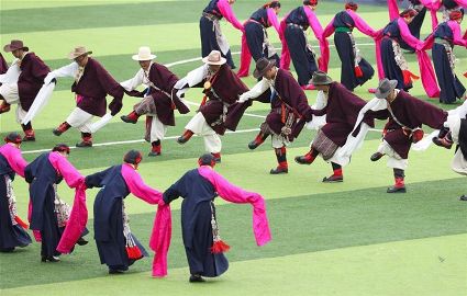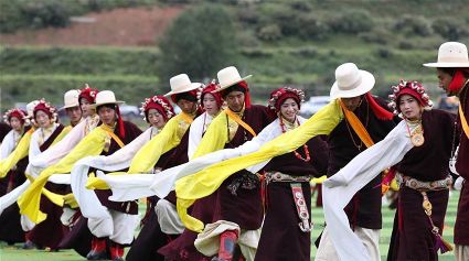 7月29日,來自四川省道孚縣各地的上萬名藏族群眾在道孚中學(xué)載歌載舞,歡慶第三屆安巴農(nóng)耕文化旅游節(jié)。安巴在藏語中是五月的意思,藏歷五月正值農(nóng)閑時(shí)期,藏族群眾都會(huì)舉行各種活動(dòng),祈禱風(fēng)調(diào)雨順,吉祥平安。