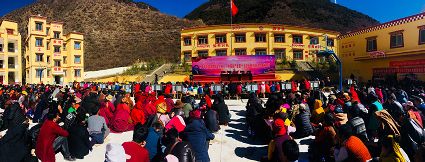 11月18日,筆者跟隨州委群眾宣講團(tuán)來(lái)到鄉(xiāng)城縣熱打鄉(xiāng)日然寺,宣講現(xiàn)場(chǎng)宏大的場(chǎng)面和龐大的觀眾人數(shù)給了我們不小的驚喜,場(chǎng)地雖然是安排在了日然寺,但附近的村民都趕來(lái)聆聽(tīng)宣講,368人齊聚一堂,讓日然寺的壩子顯得有些擁擠。