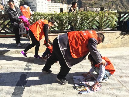 在瀘定橋上,小記者們向游客講述當年“紅軍飛奪瀘定橋”的英雄壯舉。在瀘定橋河西長廊,帶隊老師組織小記者和家長們進行了“向目標前進”的親子互動游戲,游戲?qū)议L和孩子的默契程度進行了考驗,鍛煉了他們的智力和體力。在瀘定紅軍紀念館廣場上,小記者們按照帶隊老師的要求進行拼接游戲,完成“小小紅軍支援前線”,獲勝的小組獲得了獎品。游戲結(jié)束后,小記者們在講解人員的帶領(lǐng)下參觀了瀘定紅軍紀念館,了解了許多相關(guān)的歷史知識。同時,小記者們以組為單位開展了“講紅色故事”活動,講解內(nèi)容涉及瀘定橋的修建、瀘定橋勇士英勇犧牲的故事等,讓小記者進一步了解到了瀘定縣的紅色歷史文化。