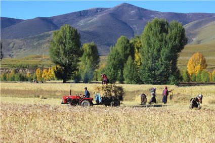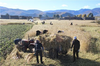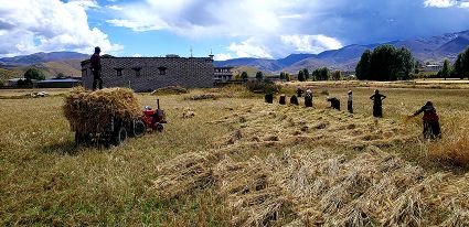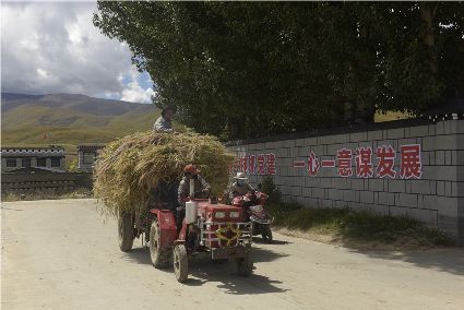 “我們要利用這段晴好的季節(jié),抓緊收割?!痹趶V袤的原野,村民們開鐮收割青稞,一輛輛滿載成捆青稞的拖拉機在田間和鄉(xiāng)村小道上歡快地疾馳。