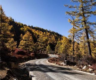 深秋時(shí)節(jié),晴空、群山、秋葉在高原清澈的天光下勾勒出川西鄉(xiāng)城縣一幅幅美麗畫卷。
