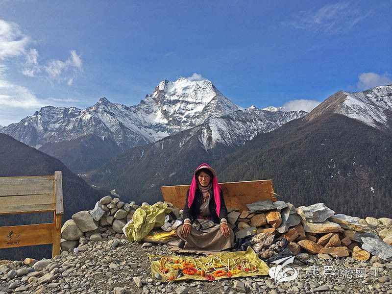 坐環(huán)保車進(jìn)入景區(qū),最好的座位當(dāng)然是倒坐在最后一排。我和那姆背風(fēng)坐著最后一排,看風(fēng)景后退或者說是前進(jìn)。那姆給我講起她17歲跟著父母、弟弟,舅舅和表妹六個(gè)人,牽著兩匹馬連轉(zhuǎn)三座神山的經(jīng)歷,一共用了六天時(shí)間,“經(jīng)常是這個(gè)埡口還在下著雪,連著的埡口就是大太陽(yáng),有時(shí)候我身體的左邊在雨里,身體的右邊在太陽(yáng)下。”那姆拍著手歡呼著,“你知道嗎,我被彩虹照過,我就站在彩虹下面,彩虹穿過了我。”我好喜歡這個(gè)姑娘呀,陽(yáng)光燦爛。有時(shí)候山路特別陡峭,爸爸在前面牽著馬,那姆托著馬的屁股,以防它摔下山崖。
