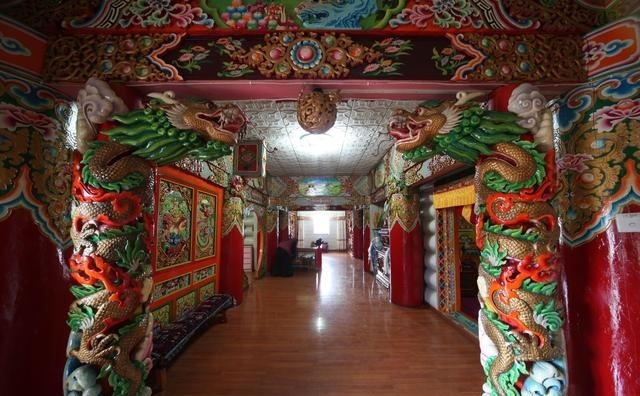 道孚民居室內(nèi)精雕細(xì)鏤,描金繪彩,每一個(gè)圖案或圖畫就是一個(gè)吉祥物或一個(gè)傳說(shuō)。民居客廳陳設(shè)豪華,富麗堂皇,極顯主人的富有;經(jīng)堂供奉佛像,酥油燈長(zhǎng)明,是家中的清靜之地;臥室多用箱式或椅式藏床,陳設(shè)溫馨而別具風(fēng)情。