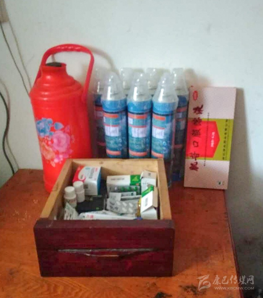 貢布卡公路養(yǎng)護管理站為游客準備的開水、氧氣瓶及藥品。