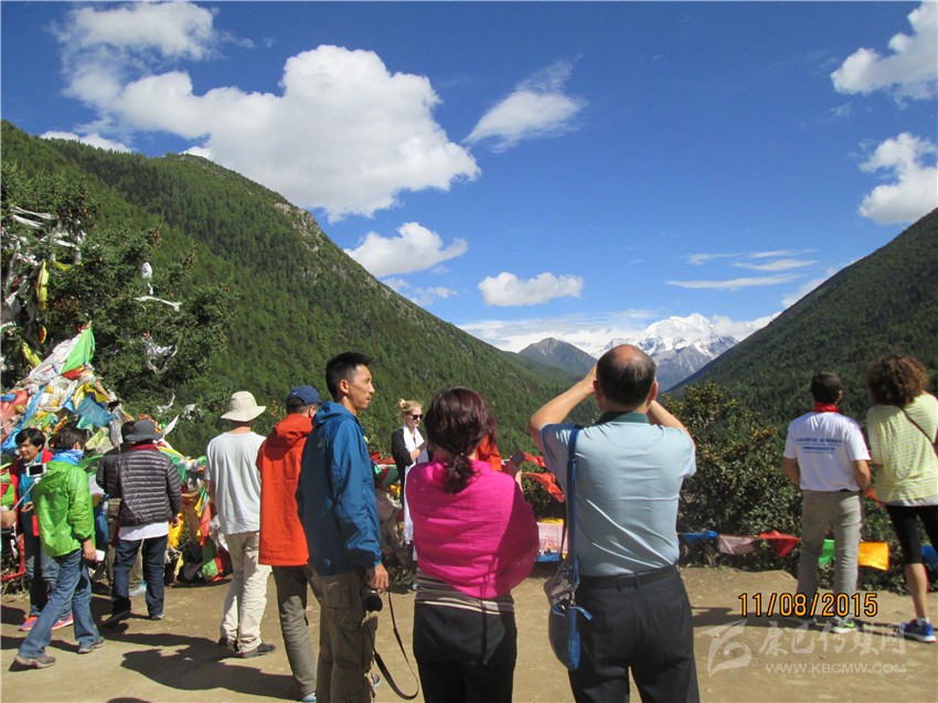 游客從遠(yuǎn)方領(lǐng)略亞拉雪山獨(dú)特風(fēng)采。