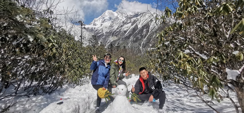 今年春節(jié)期間,我州A級旅游景區(qū)共接待游客10.96萬人次,實(shí)現(xiàn)門票收入319.86萬元。圖為游客在海螺溝景區(qū)盡享冬日樂趣。