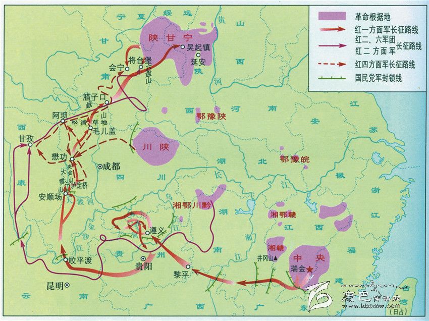 紅軍長(zhǎng)征路線圖。