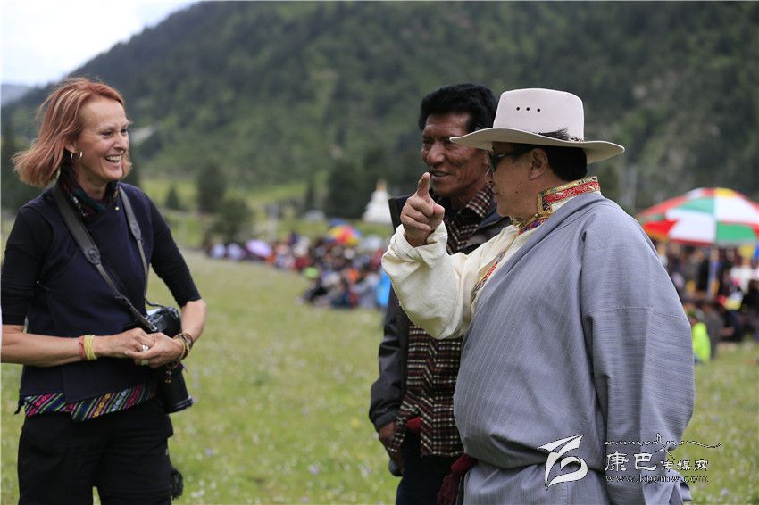 根秋扎西向國(guó)外游客介紹家鄉(xiāng)風(fēng)俗。