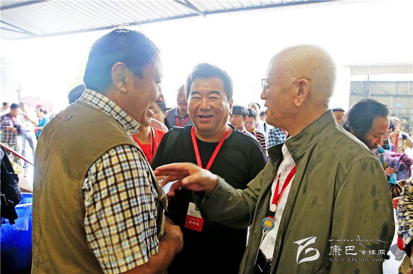 根秋扎西正在與中國(guó)社科院降邊降措和全國(guó)格辦主任諾布旺丹交流。