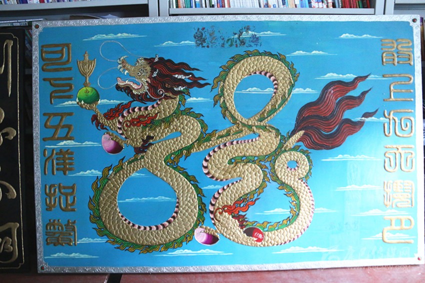 走進(jìn)王長生的工作室,他保存有古董級的電影放映機(jī)、留聲機(jī)、電話、黑白電視機(jī)、照相器材和吉他、二胡、笛子等樂器應(yīng)有盡有,看到這些古老的“裝備”,記者仿佛走進(jìn)了那段塵封的歲月。2008年,王長生創(chuàng)作的雕刻畫《昂首蒼穹》,走進(jìn)成都國際博覽中心,國家文化產(chǎn)業(yè)設(shè)計(jì)院的兩名專家評價(jià)說,作品的文化內(nèi)涵和藝術(shù)觀賞性都很高。王長生解釋說,龍是中華民族的圖騰,龍中之龍?jiān)⒁鉃樯暇盘鞌堅(jiān)拢挛逖笞谨M,反映了中華民族的豪氣。
