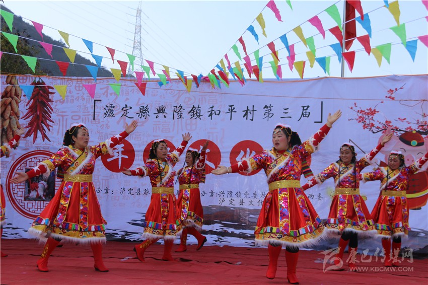“這里有舉世聞名的牛背山,還有那風(fēng)景秀麗的娘娘山,蜿蜒曲折的大渡河,遠方的朋友??!歡迎你到和平來!”村民自告奮勇上臺演唱的歌曲,引得觀眾陣陣掌聲?!拔矣昧恕稓g迎你到康巴來》的調(diào),把歌詞改了,還是要體現(xiàn)我們的地方特色。唱得怎么樣不說,這是我們老百姓的舞臺。”