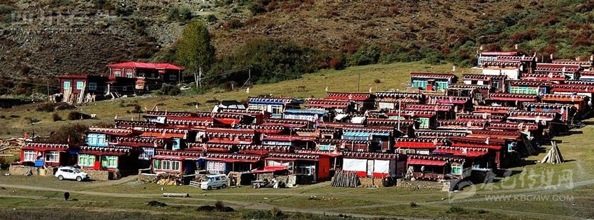 藏式房多平頂,可以說是環(huán)境的產(chǎn)物。高原干旱少雨,無須飛檐高頂,冬有積雪,便于打掃;最重要的是風(fēng)沙大而頻繁,高屋難耐勁風(fēng)。此外,平頂民房還有一個精神功能就是作為信仰的場所。房頂供奉有神靈的祭壇,有煨桑的香爐,更有家家必插的五色經(jīng)幡,有的房頂平臺的圖符裝飾極為精美,把最古老的建筑樣式和最現(xiàn)代的建筑格調(diào)融為一體。另一個共同特點(diǎn)便是,一般講究一些的農(nóng)村都把房子的夯土外壁刷成暗含深意的純白。這自然是典型的藏式院落了。而不太講究的半農(nóng)半牧區(qū)則保持原色。白色房屋上部突出棕色材料的房檐,或漆成棕紅的裝飾帶,既勾勒出輪廓,又平添了幾多美觀。白色建筑在藏語中有個非常詩意的名字,叫“點(diǎn)點(diǎn)繁星”。