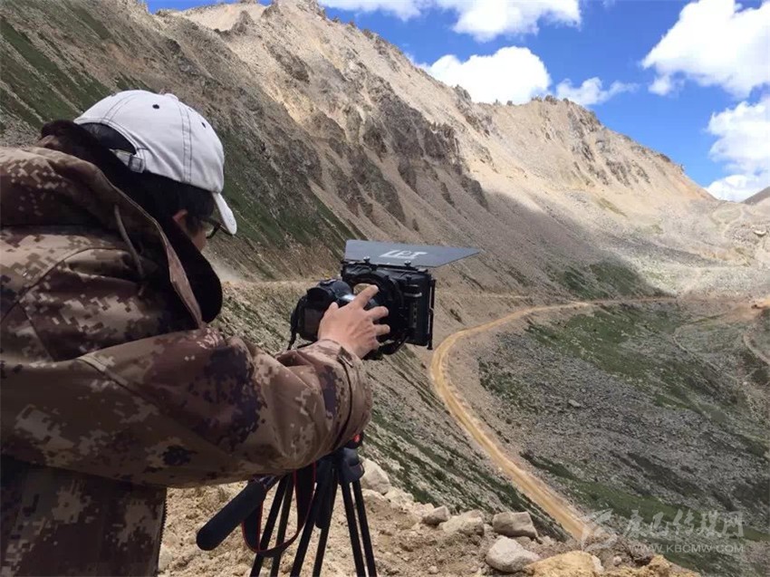 攝像記者在拍攝雀兒山險道。