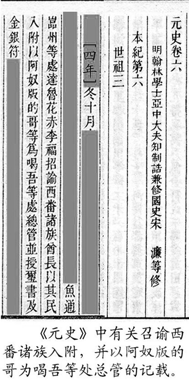 今屬康定縣的木雅,又分為上木雅和下木雅。下木雅的色烏絨地方,是木雅王曾住過的地方之一。民間又稱住在這里的王為“西吳甲布”(即“西吳王”),進(jìn)而又附會(huì)出個(gè)“西吳國”來。從木雅貢嘎西邊那條叫色烏絨的山溝往南到打箭爐,正如傳說的那樣,早年一般要走三天。《元史》有“喝吾”的記載,“喝吾”“色烏”都是藏語的音譯,藏語“絨”為山溝之意,指的就是這個(gè)色烏絨。元世祖忽必烈征滇,沿大渡河、金沙江而進(jìn),得到沿途部落首領(lǐng)的大力支持。長河(大渡河)西的“西吳王”自然也不例外。所以在至元四年(公元1267年)“冬十月壬戌,魚通巖州等到處達(dá)魯花赤李福,招諭西番諸族酋長以其民入附,以阿奴版的哥等為喝吾等處總管,并授璽書及金銀符?!钡玫缴w有皇帝大印(玉璽)文書和金銀符,朝廷正式任命為“喝吾”總管的酋長(木雅王)阿奴版的哥,之后從色烏絨遷到打煎爐,不僅成為朝廷認(rèn)可的“長河西土官”,還作了“四川分省右丞”。我們是否可以判定,“木雅王”遷爐的時(shí)間應(yīng)在至元四年(公元1267年)之后?1267年距今740多年,以此推算,如前文所說:今天西爐(康定城)的歷史,大約為700年!再者,若從宋代的“卡拉國”算起,說“明正”歷四十二代,不能說沒有一點(diǎn)來頭。