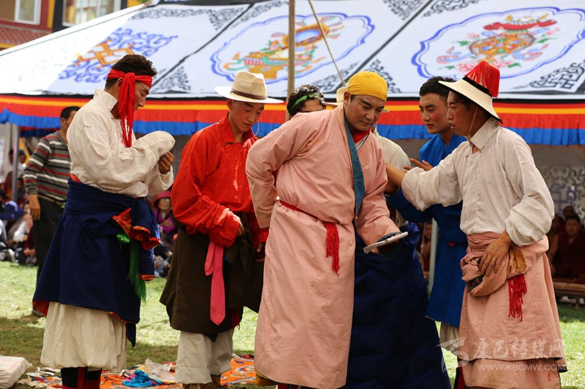 不過(guò)依照習(xí)慣,大家還是要募捐。誰(shuí)家募捐了多少,藏戲團(tuán)會(huì)在“央勒節(jié)”的最后一天,即藏戲演出的尾聲“扎西交”上道謝?!霸鹘弧庇袔讓右饬x,祝賀本次“央勒節(jié)”功德圓滿(mǎn),祈愿來(lái)年五谷豐登幸福安康,感謝上天賜予大地的恩惠。演員們向供奉在大帳篷中央的祖師爺唐東杰布莊重磕頭,把撒糌灑向天空,謝幕,“央勒節(jié)”便在熱烈的氣氛中結(jié)束了。每當(dāng)聽(tīng)到話(huà)筒里喊出:“XX顧伙(顧伙:巴塘方言藏語(yǔ),即搭帳篷的某一家),捐款XX元,道謝了!”時(shí),大家都會(huì)生出不舍與惆悵之感,撤帳篷回家,日子又恢復(fù)到平常的瑣碎里了。
