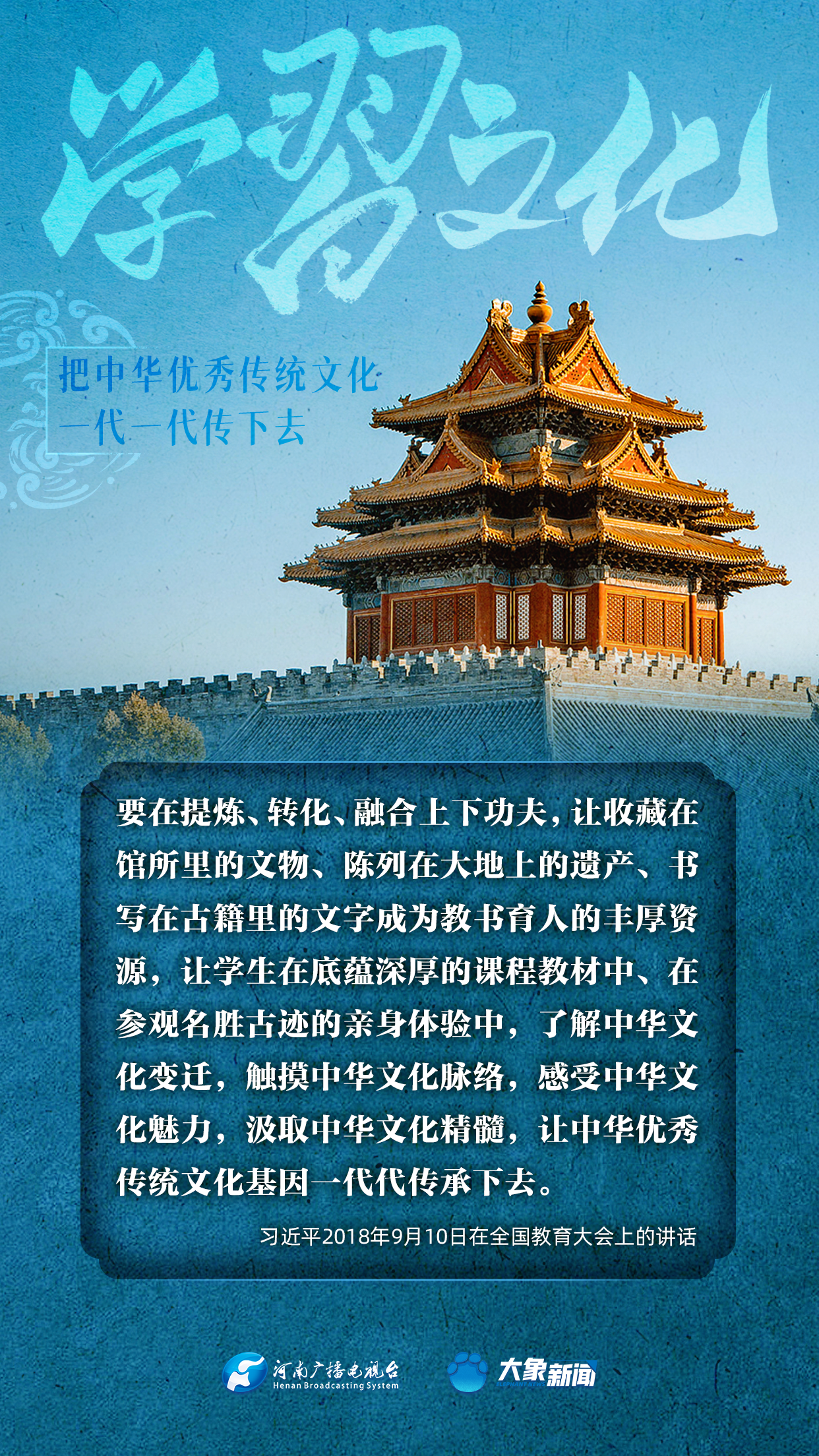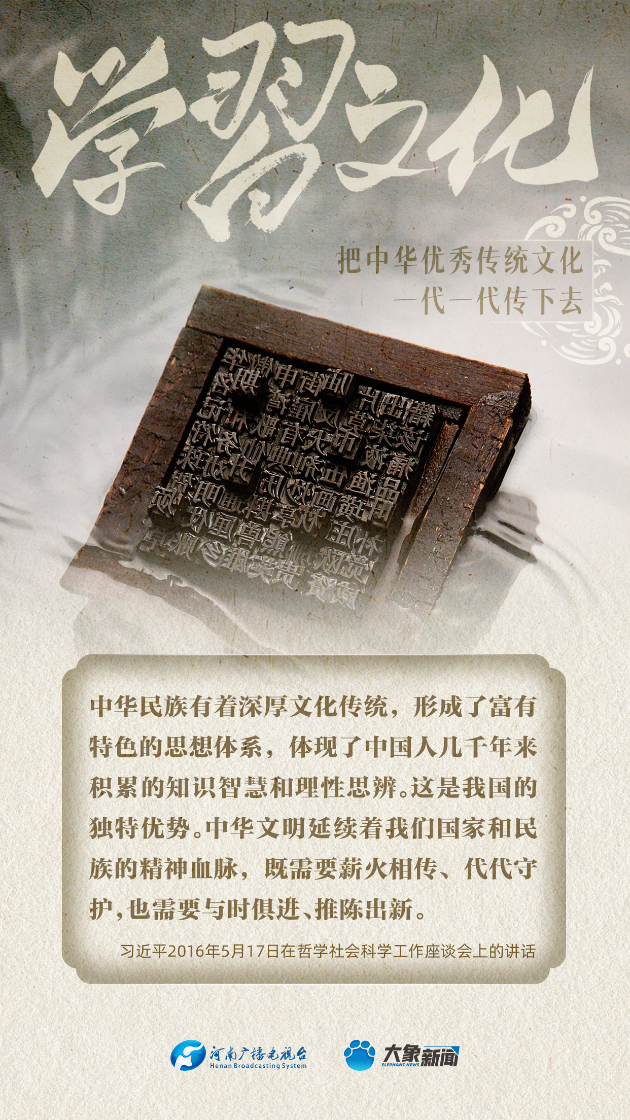 習(xí)近平總書(shū)記高度重視中華優(yōu)秀傳統(tǒng)文化的傳承發(fā)展,發(fā)表了一系列重要講話(huà),大象新聞邀您一起學(xué)思踐悟,身體力行。