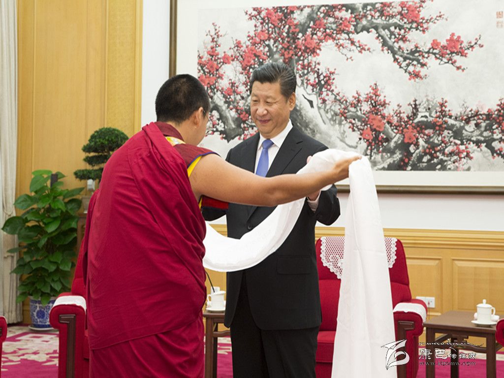 班禪向習(xí)近平敬獻(xiàn)了哈達(dá),并介紹了他坐床20年來(lái)的情況,習(xí)近平對(duì)他在各方面取得的進(jìn)步表示祝賀。