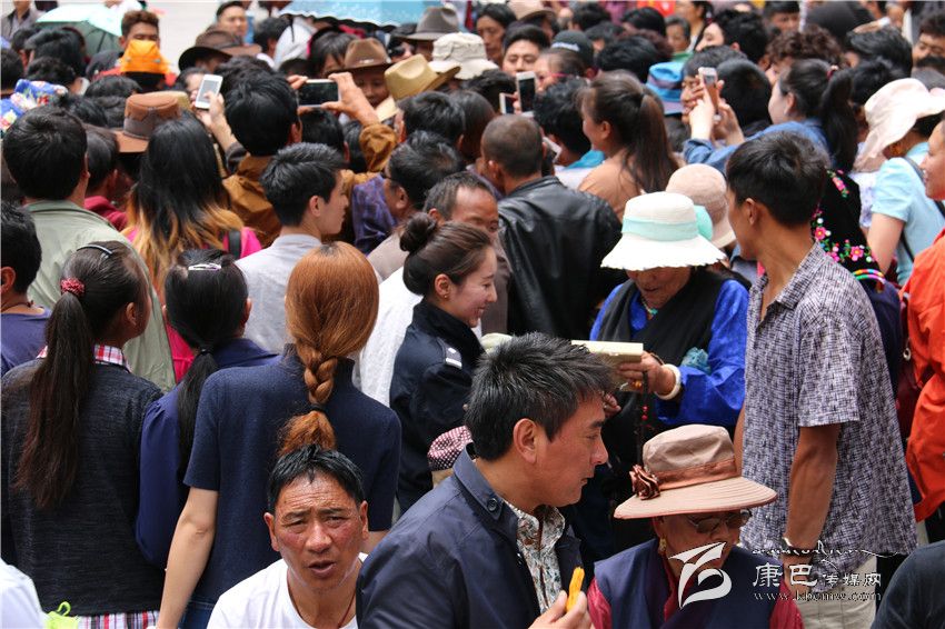 儀式上,當(dāng)擁金措、貢桑吉和布姆分別演唱了《世紀(jì)情白玉夢(mèng)》、《欽諾》和《康巴之戀》時(shí),場下掌聲不斷。接著,當(dāng)州民族歌舞團(tuán)的小伙們跳起歡快的《踢踏》時(shí),在場的觀眾立刻與之互動(dòng),并不時(shí)爆發(fā)出熱烈掌聲。