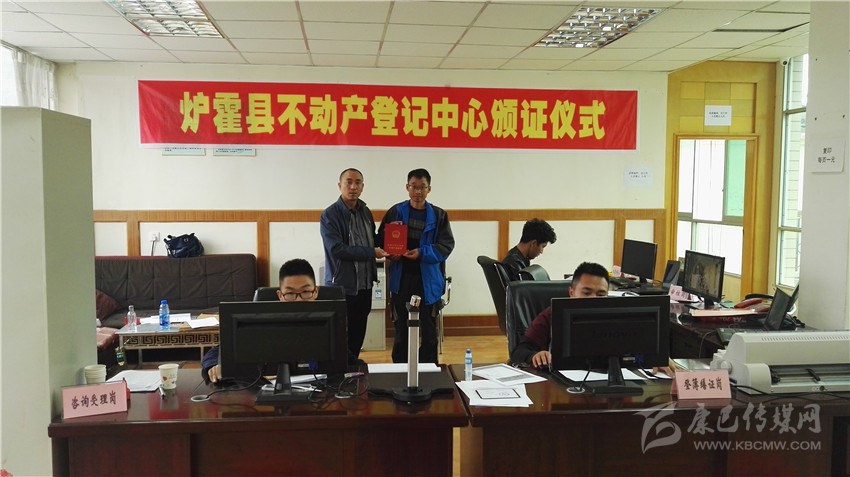 圖為我州爐霍縣頒發(fā)首張不動(dòng)產(chǎn)登記證。(州國(guó)土資源局 供圖)