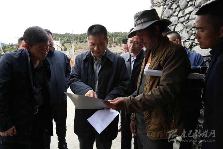 圖為劉成鳴在道孚縣各卡鄉(xiāng)凍坡甲村督導(dǎo)脫貧攻堅工作。