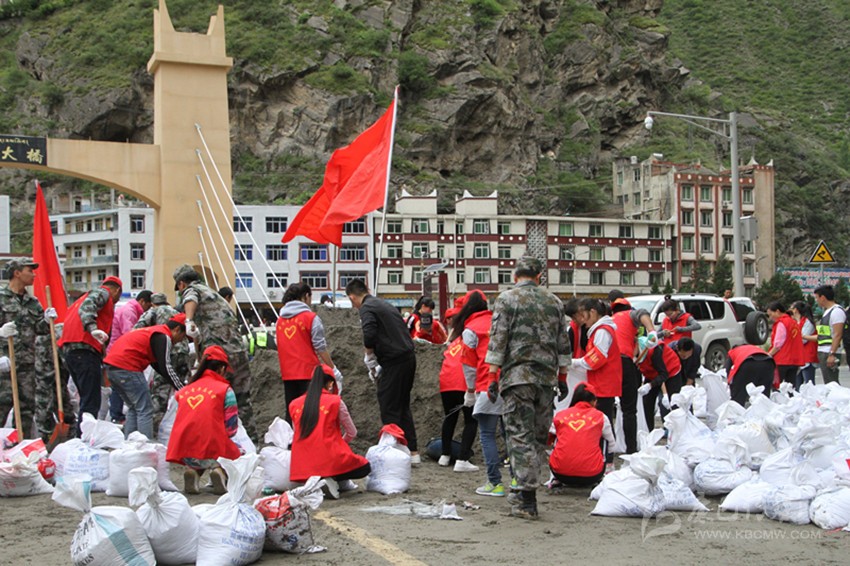 這樣無私付出、無畏向前的行為時時上演在丹巴抗洪搶險的每一處戰(zhàn)場上。他們有的站在洪流中指揮救災,額頭冒出大顆的汗珠;有的肩抗沙袋大步向前,腳下濺起的水花打濕了臉龐;有的連夜冒雨疏散群眾、指揮交通,來不及休息繼續(xù)堅守一線。“6·15”險情發(fā)生后,丹巴縣150名政法干警、武警官兵和縣級機關300多名45歲以下男性黨員、干部奔赴抗洪救災一線,累計裝填沙袋15000袋、綁捆鐵絲1噸、鐵絲網(wǎng)500個,發(fā)放救生衣500余件。