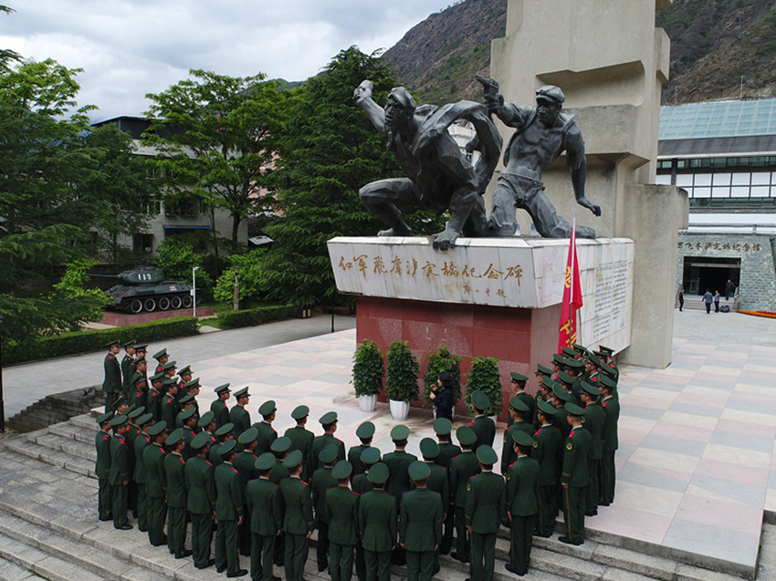 圖為官兵參觀紅軍飛奪瀘定橋紀(jì)念碑。