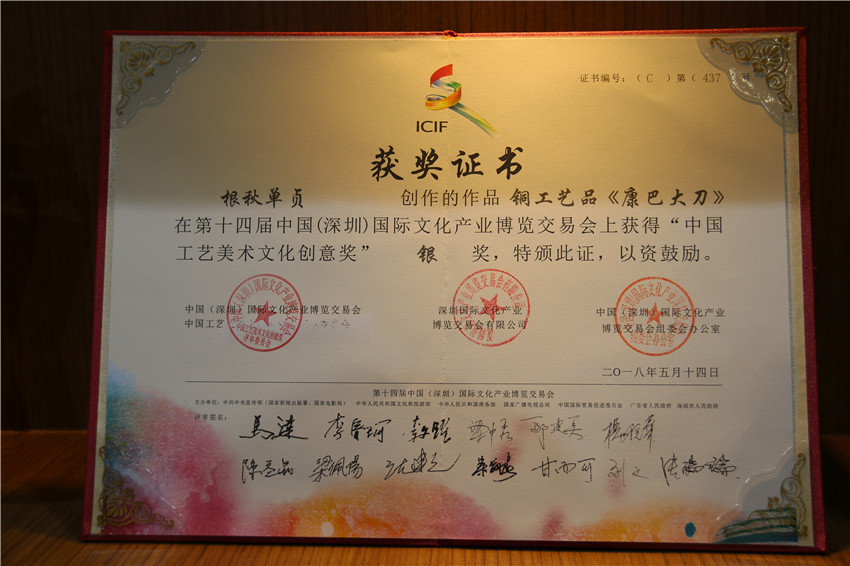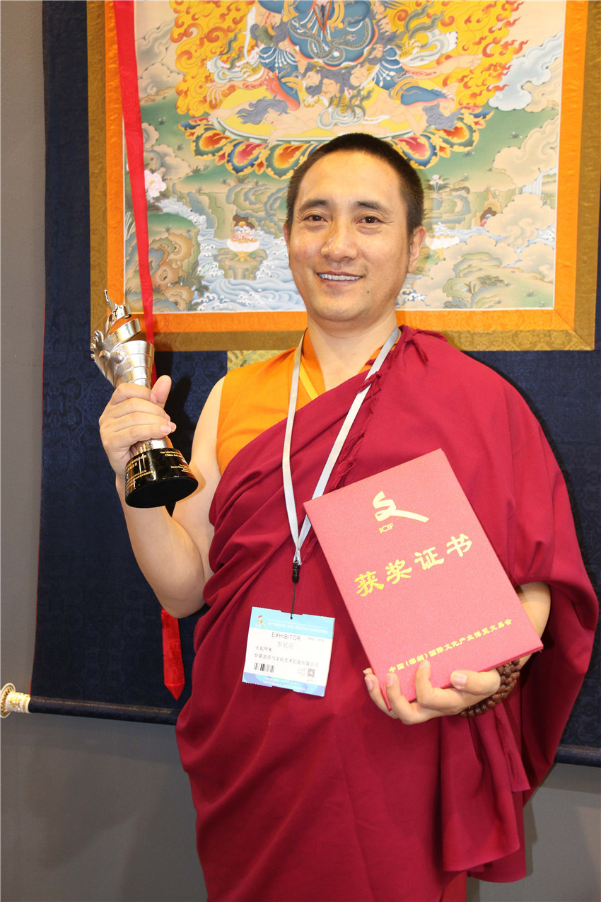 據(jù)了解,在本次深圳文博會上,我州參加十四屆深圳文博會參賽展品中有10件工藝品獲獎。其中,白玉縣董察文化公司參展作品首當其沖獲得工藝美術(shù)文化創(chuàng)意金獎。爐霍縣珍馬文化藝術(shù)公司、爐霍縣華彩文化傳播有限公司、白玉縣河坡藏民族手工藝公司、新龍藥泥面具分別獲得工藝美術(shù)文化創(chuàng)意銀獎;德格縣多普溝噶瑪噶孜文化旅游公司、甘孜州郎卡杰唐卡有限公司、丹巴木版畫、康體書法、德格絳紅天堂文化旅游公司分別獲得工藝美術(shù)文化創(chuàng)意銅獎。同時,州文體廣新局和康巴文化研究院獲優(yōu)秀組織獎;甘孜州全境文化產(chǎn)業(yè)有限發(fā)展公司和康巴聚慧文化傳播有限公司獲得優(yōu)秀展示獎。其它參展商均獲得本屆文博會優(yōu)秀入圍獎。國家一級手工藝美術(shù)大師、爐霍縣華彩文化傳播有限公司馮建華:“這一次是我公司第一次在文博會上參展,就榮獲銀獎,這要感謝黨委政府和文化部門提供的平臺。相信在此基礎上狠下功夫,越做越好,將陶瓷藝術(shù)與唐卡藝術(shù)很好的發(fā)揚光大。”