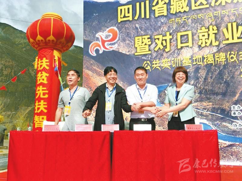 青羊·得榮就業(yè)扶貧公共實(shí)訓(xùn)基地揭牌儀式現(xiàn)場(chǎng)。(青軒 供圖)