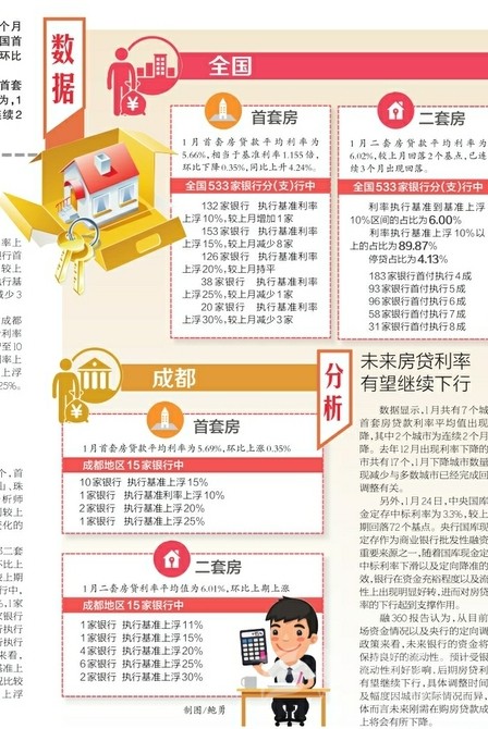全國首套房貸利率連續(xù)2個月下降 成都主流:首套房貸利率上浮15%