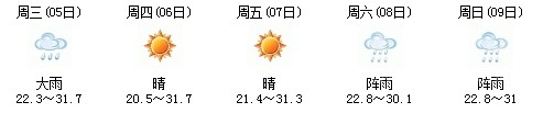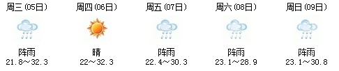 5日開始一直到9日都是多云到晴的天氣,日最高氣溫27℃左右。每天都有陣雨(小雨),考生出行應(yīng)防山地災(zāi)害。