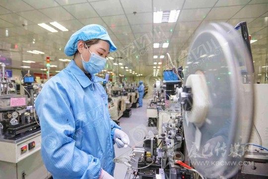 遂寧市經(jīng)開區(qū)藍彩電子智能信息化車間,工人正在生產(chǎn)線開足馬力加緊生產(chǎn)。