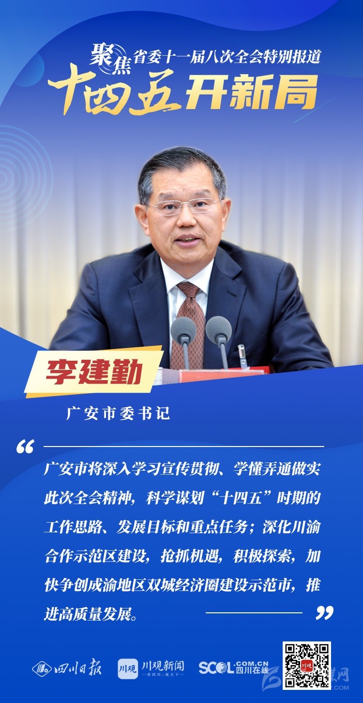 12月3日,中共四川省委十一屆八次全會(huì)在成都開幕,全會(huì)將深入學(xué)習(xí)貫徹黨的十九屆五中全會(huì)精神,審議《中共四川省委關(guān)于制定四川省國(guó)民經(jīng)濟(jì)和社會(huì)發(fā)展第十四個(gè)五年規(guī)劃和二〇三五年遠(yuǎn)景目標(biāo)的建議(討論稿)》,為未來(lái)5年乃至更長(zhǎng)時(shí)期四川發(fā)展謀劃新藍(lán)圖 。