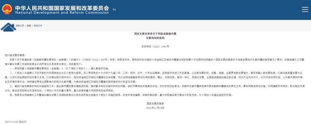 國(guó)家發(fā)展改革委關(guān)于同意成都都市圈