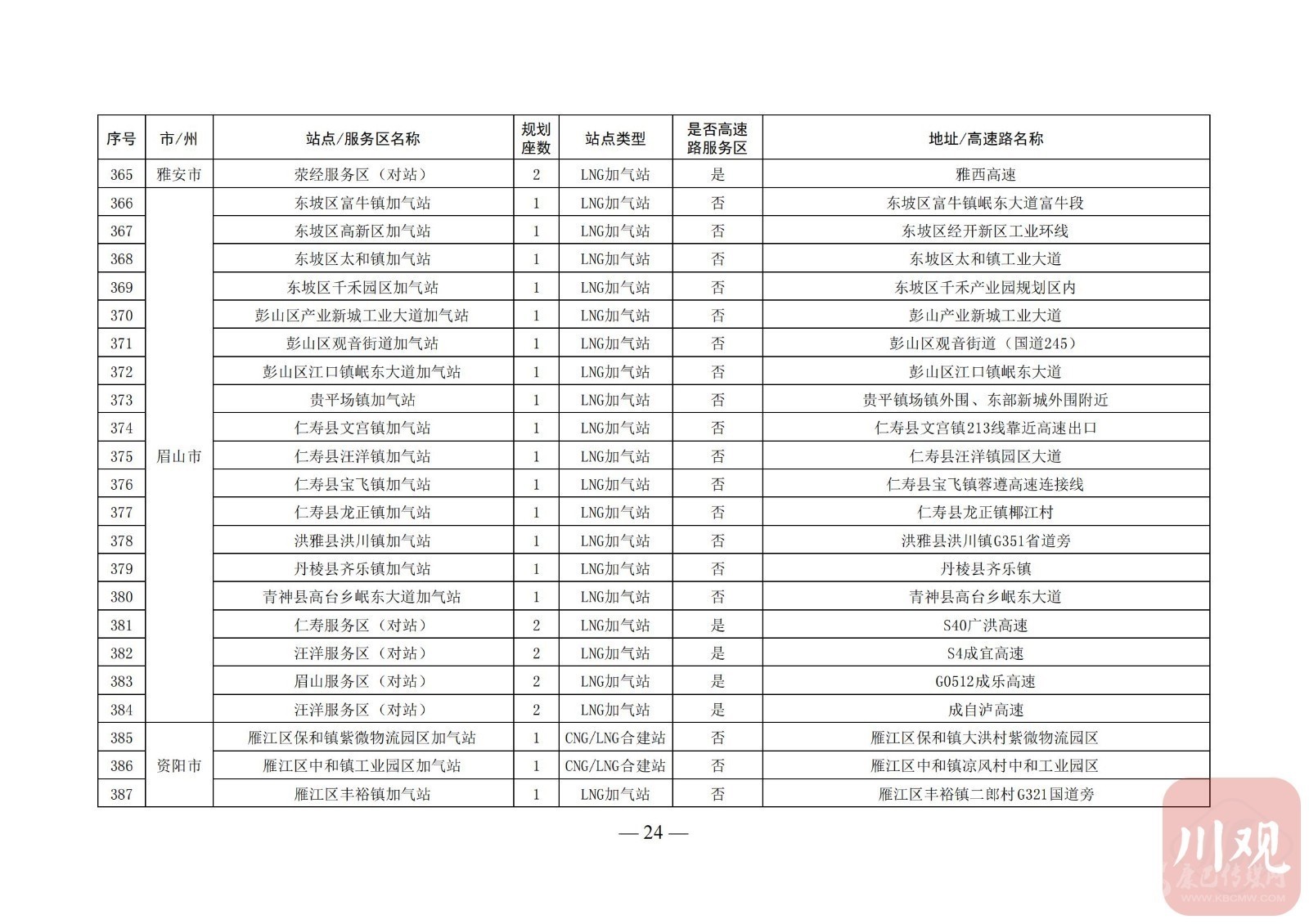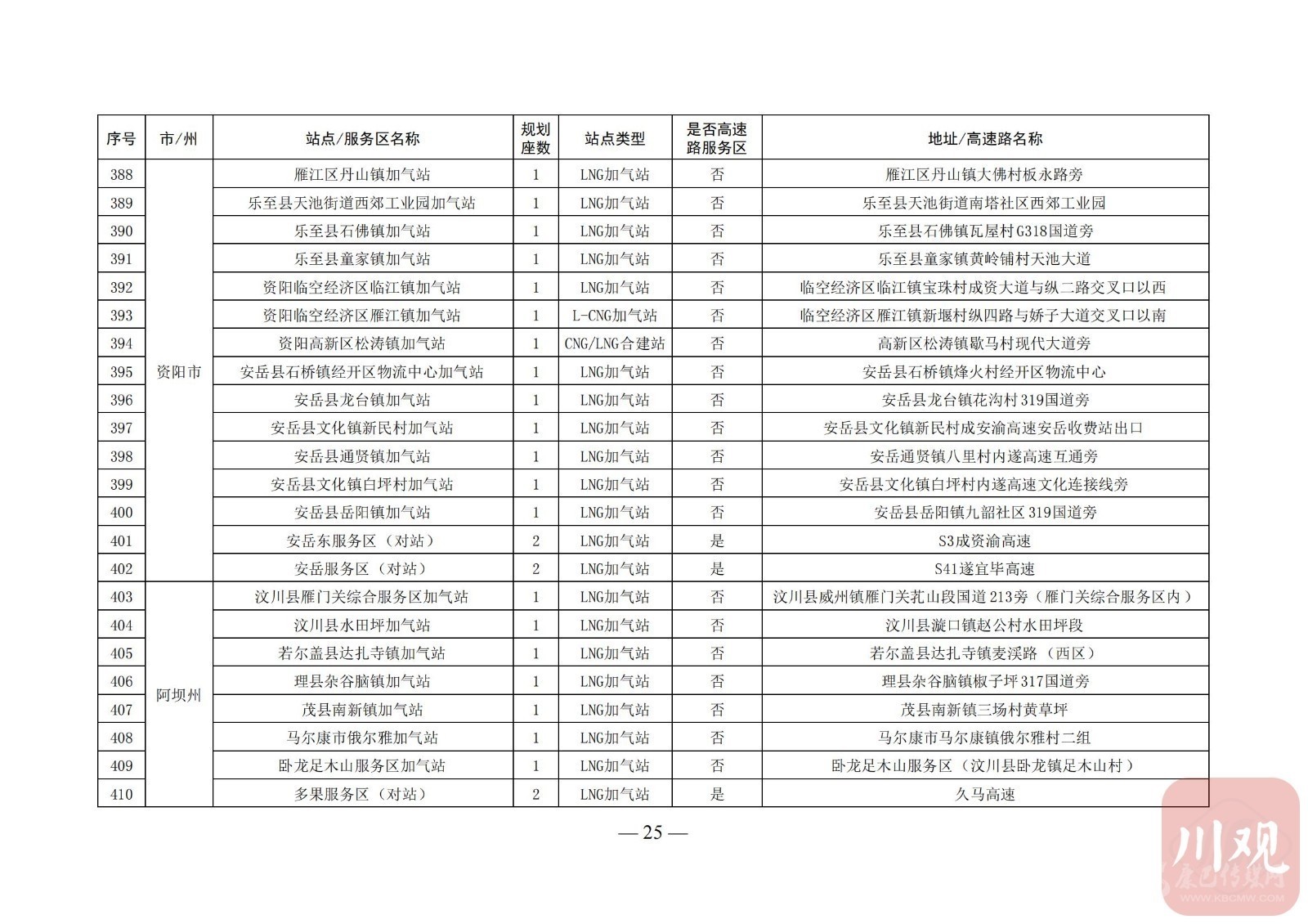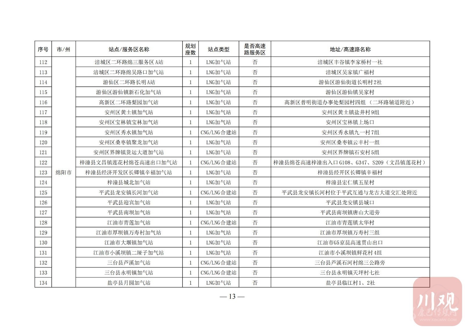 附:四川省天然氣汽車加氣站布局表