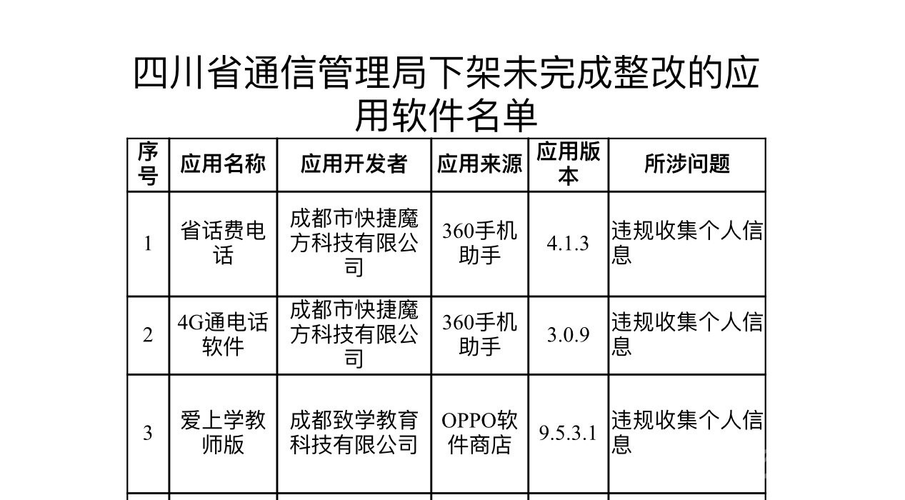 當(dāng)天,記者從四川省通信管理局獲悉,依據(jù)《個人信息保護法》《網(wǎng)絡(luò)安全法》等相關(guān)法律要求,該局組織對這3款A(yù)PP進行下架,要求相關(guān)應(yīng)用商店立即組織對名單中應(yīng)用軟件進行下架處理。