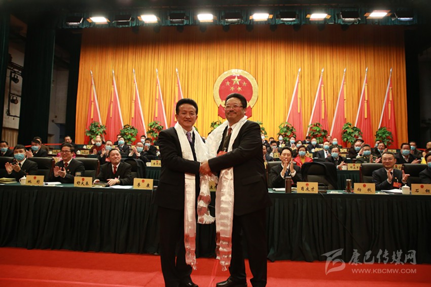 李康同志和向秋同志在州十二屆人大五次會(huì)上。