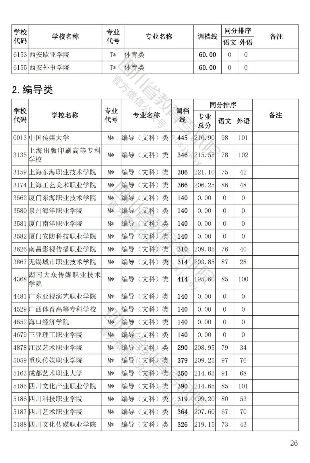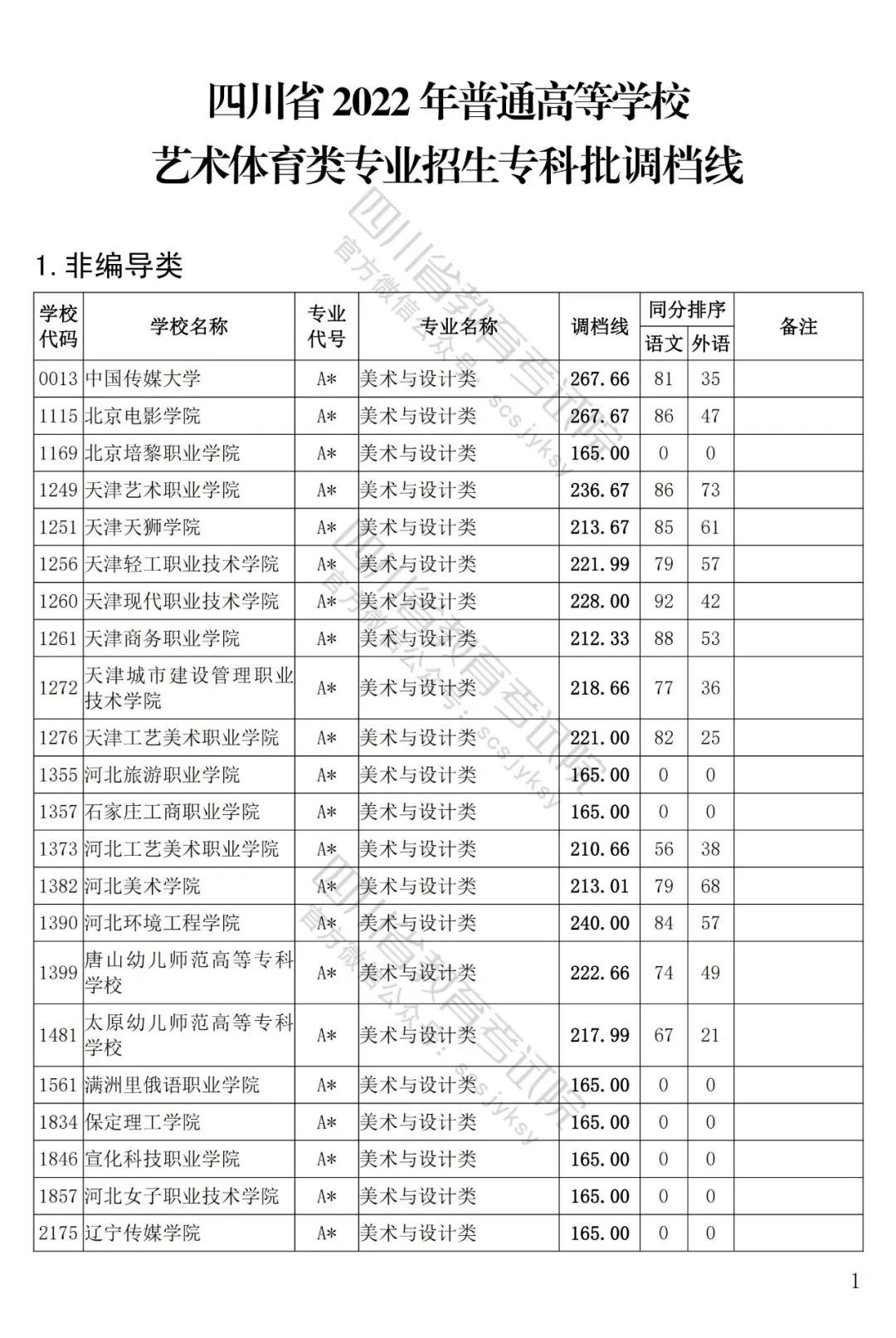 四川省2022年普通高等學(xué)校藝術(shù)體育類專科批已于8月5日投檔錄取。為方便廣大考生和家長及時(shí)了解錄取信息,省教育考試院按非編導(dǎo)類和編導(dǎo)類發(fā)布了藝體類分校、分專業(yè)類調(diào)檔線。