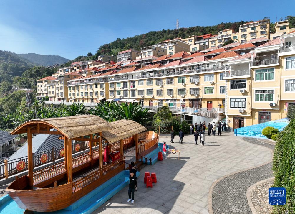 這是2023年11月19日拍攝的福安市下岐村漁民廣場(chǎng)和周邊的樓房(無人機(jī)照片)。新華社記者 林善傳 攝