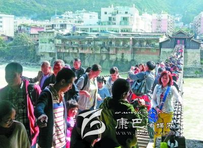 據(jù)縣文物局局長郭成燕介紹,今年“十一”黃金周期間,游覽瀘定橋的游客較往年更理性,沒有出現(xiàn)井噴現(xiàn)象,每天游客量比較平穩(wěn)。游客主要以成都和重慶方向?yàn)橹鳎?5%以上的游客選擇自駕游出行。據(jù)悉,在10月2日這天,瀘定橋全天接待游客近萬人。為了確保游客安全,縣旅游部門在橋頭設(shè)立了安全警示牌,在游客高峰期,工作人員每5至10分鐘分批次放行,每次參觀放行不超過100人,并安排工作人員在瀘定橋中央疏導(dǎo)游客,確保游人安全。同時(shí),在瀘定橋頭滾動(dòng)播出參觀須知和瀘定橋介紹,引導(dǎo)游人參觀。黃金周期間,該縣旅游部門堅(jiān)持24小時(shí)值班,隨時(shí)對瀘定橋及周邊進(jìn)行安全巡查,確保安全。截至10月4日,參觀瀘定橋的游客約3.3萬人,門票收入達(dá)25萬多元。