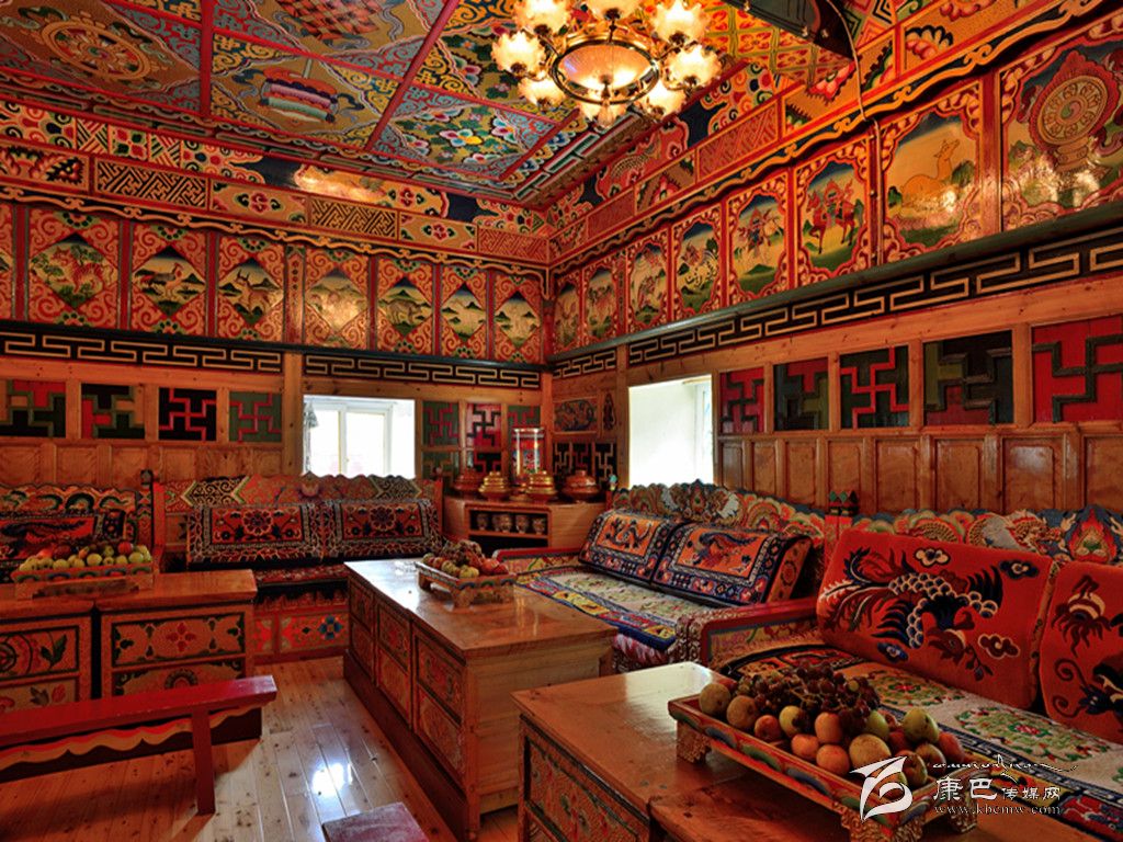 在功能布局上,打造別墅式風(fēng)格,對(duì)公共區(qū)域和每個(gè)院落進(jìn)行改造,擴(kuò)大綠化面積,強(qiáng)化視覺效果;在外觀設(shè)計(jì)上,根據(jù)藏族傳統(tǒng)的建筑風(fēng)格,提升風(fēng)貌改造,從外觀上體現(xiàn)原滋原味的本土特色;在色調(diào)搭配上,采用藏族偏愛的暖色調(diào)和古典色加以渲染,融合現(xiàn)代與民族特色;在室內(nèi)裝修上,使用精美的藏式地毯、銅器、陶制品等傳統(tǒng)藏式器皿裝飾,采用唐卡、藏族題材油畫等元素點(diǎn)綴,并適當(dāng)差異化裝修,以體現(xiàn)自然隨性舒適,讓游客透過每一個(gè)家庭感受到濃郁的藏寨風(fēng)情。