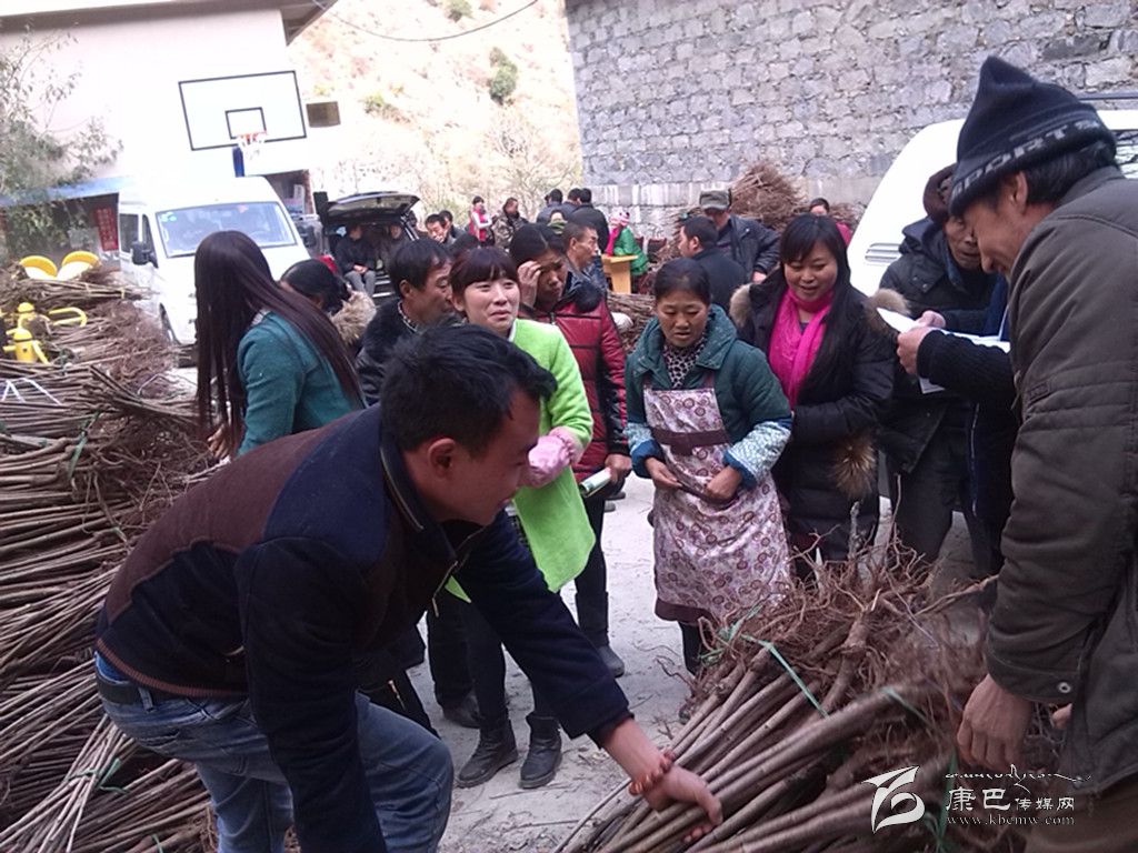 羊廠村民正在領(lǐng)取大櫻桃樹(shù)苗。