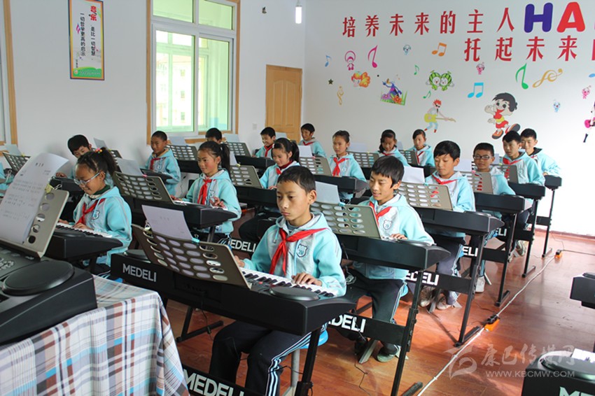 在甘孜縣城關(guān)第一完全小學(xué)的教室里,音樂教師正在教授孩子們識(shí)別五線譜,孩子們用稚嫩的雙手在電子琴鍵盤上彈奏著音樂的同時(shí),嘴里還不斷的唱著“哆唻咪發(fā)嗦”。放學(xué)時(shí),孩子們還沉浸在音樂的余韻中,興奮地給前來(lái)接送上課的父母?jìng)冎v述著課堂上的趣事。學(xué)生家長(zhǎng)翁登不勝唏噓:“大娃娃讀一完小的時(shí)候,只有語(yǔ)文數(shù)學(xué)和藏文可以學(xué),其他的課沒有專門的老師教,現(xiàn)在小女兒好安逸,還有專門的音樂老師教他們唱歌,現(xiàn)在的老師真的很厲害!”